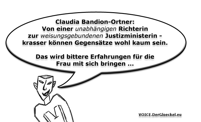 Claudia Bandion-Ortner: Von einer unabhängigen Richterin zur weisungsgebundenen Justizministerin – krasser können Gegensätze wohl kaum sein. Das wird bittere Erfahrungen für die Frau mit sich bringen …